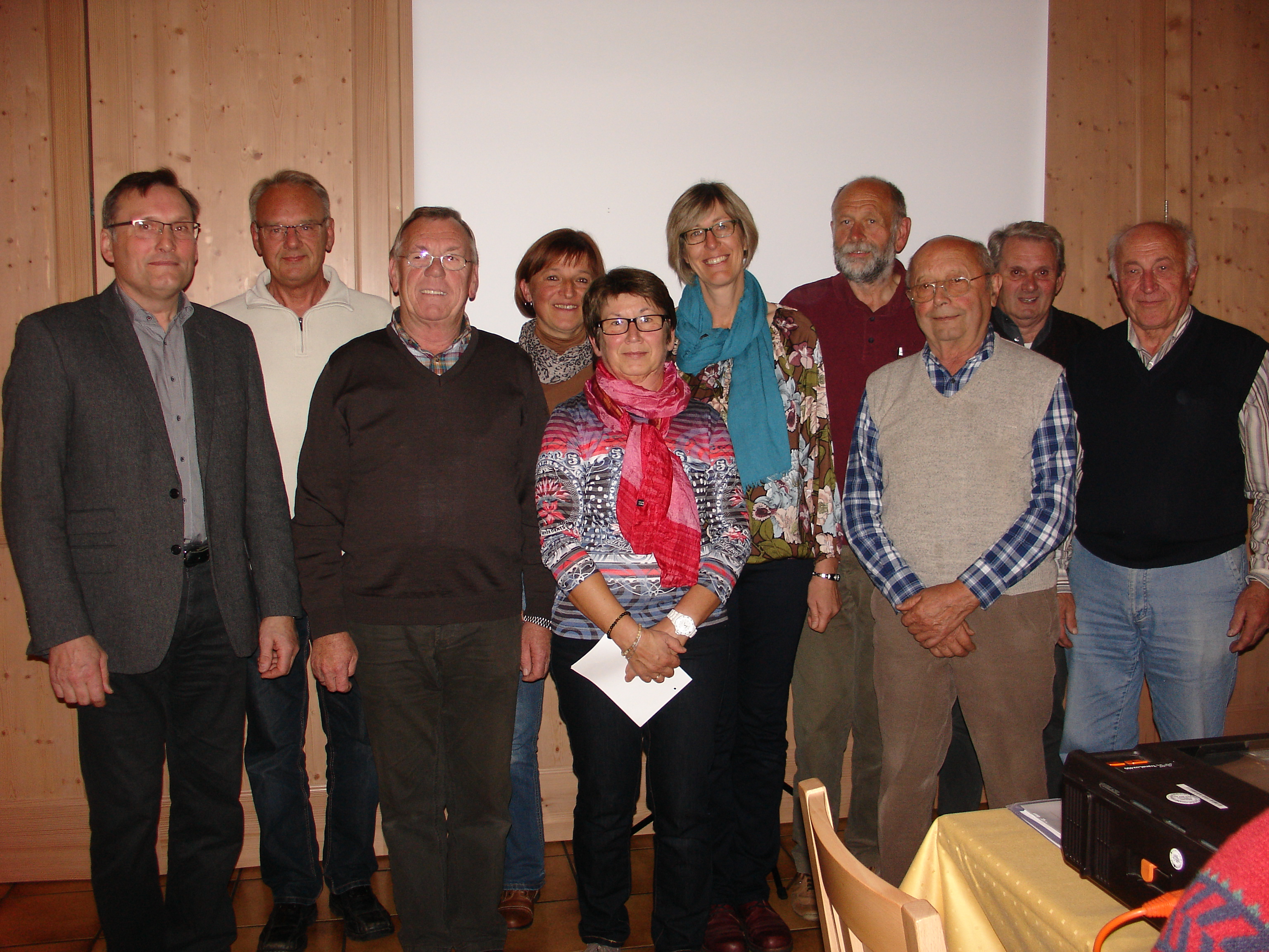 erste Reihe von links Bürgermeister Georg Spornraft-Penker, 2. Vorsitzender Hans Brandlmeier, Beisitzerin Bernadette Huber, Beisitzer Konrad Beischl, Beisitzer Josef Schwab